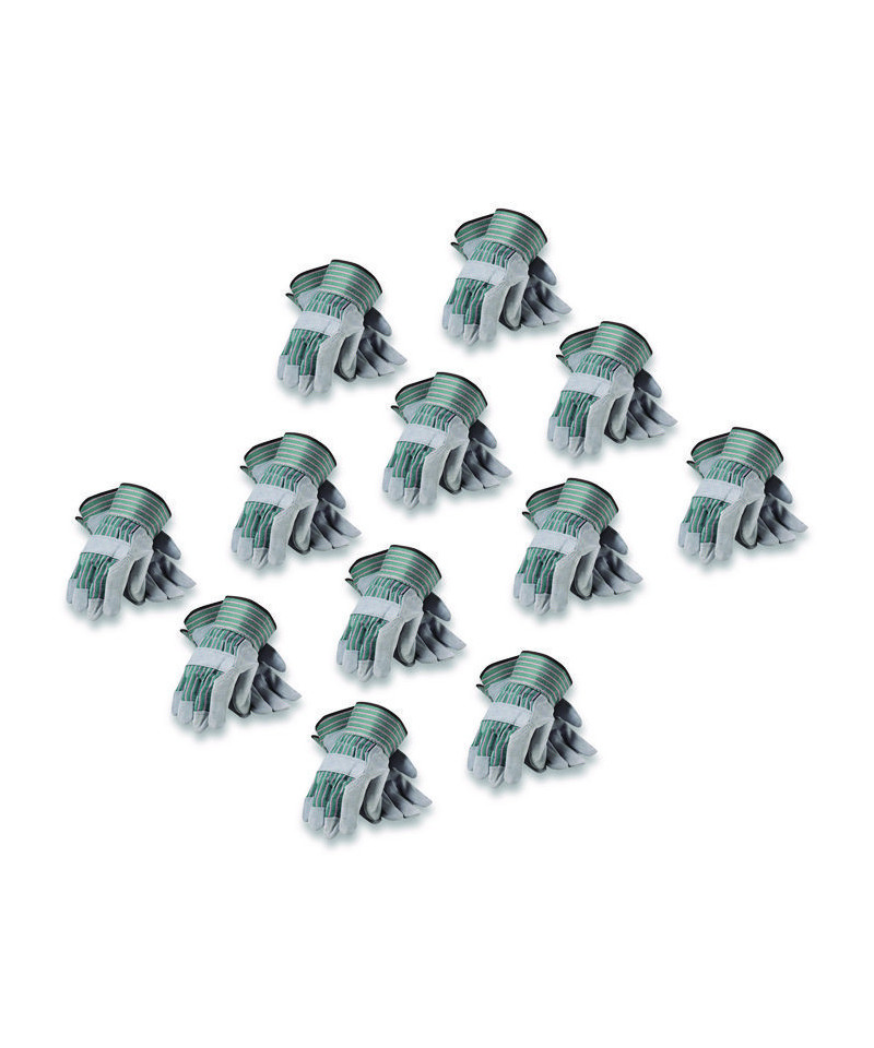 Bronze Series Leather/Fabric Work Gloves, Gunn Cut, Wing Thumb, Large (Size 9), Gray/Green, 12 Pairs