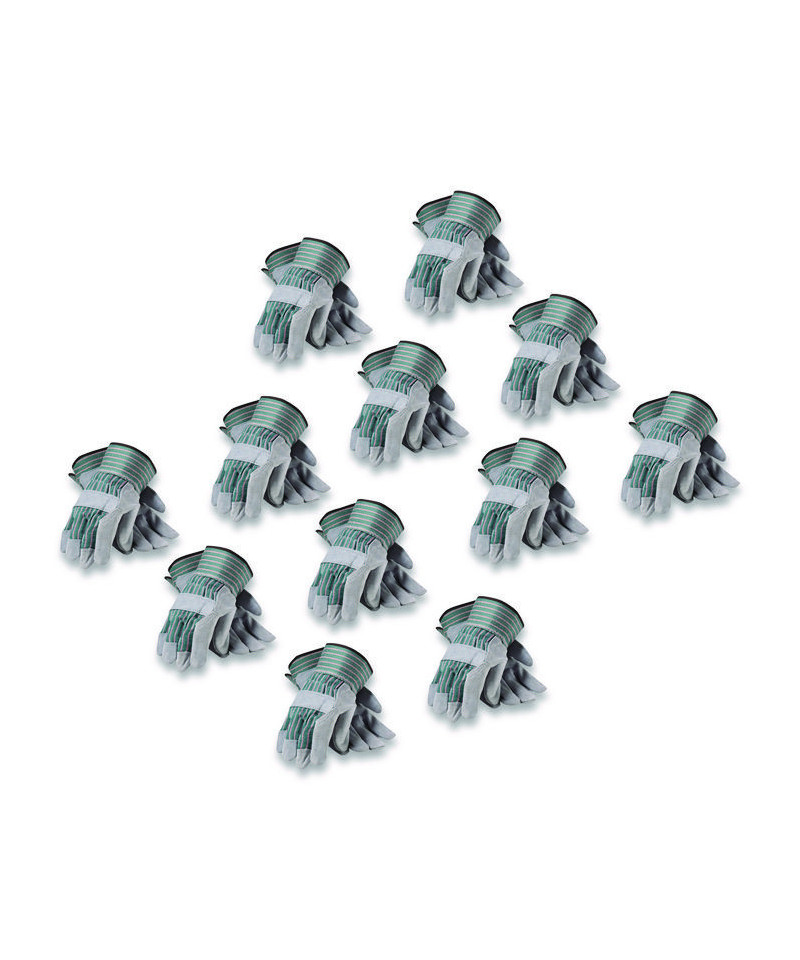 Bronze Series Leather/Fabric Work Gloves, Gunn Cut, Wing Thumb, Medium (Size 8), Gray/Green, 12 Pairs