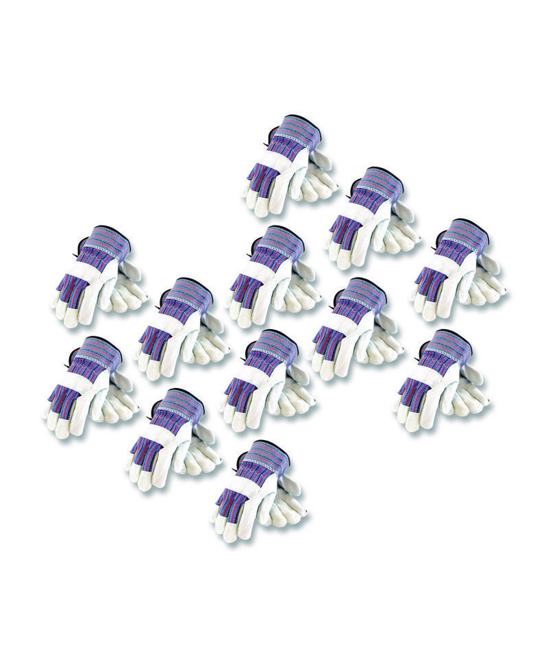 B/C Grade Shoulder Split Cowhide Leather Palm Gloves, Gunn Cut, Wing Thumb, Large, Blue/Gray, 12 Pairs