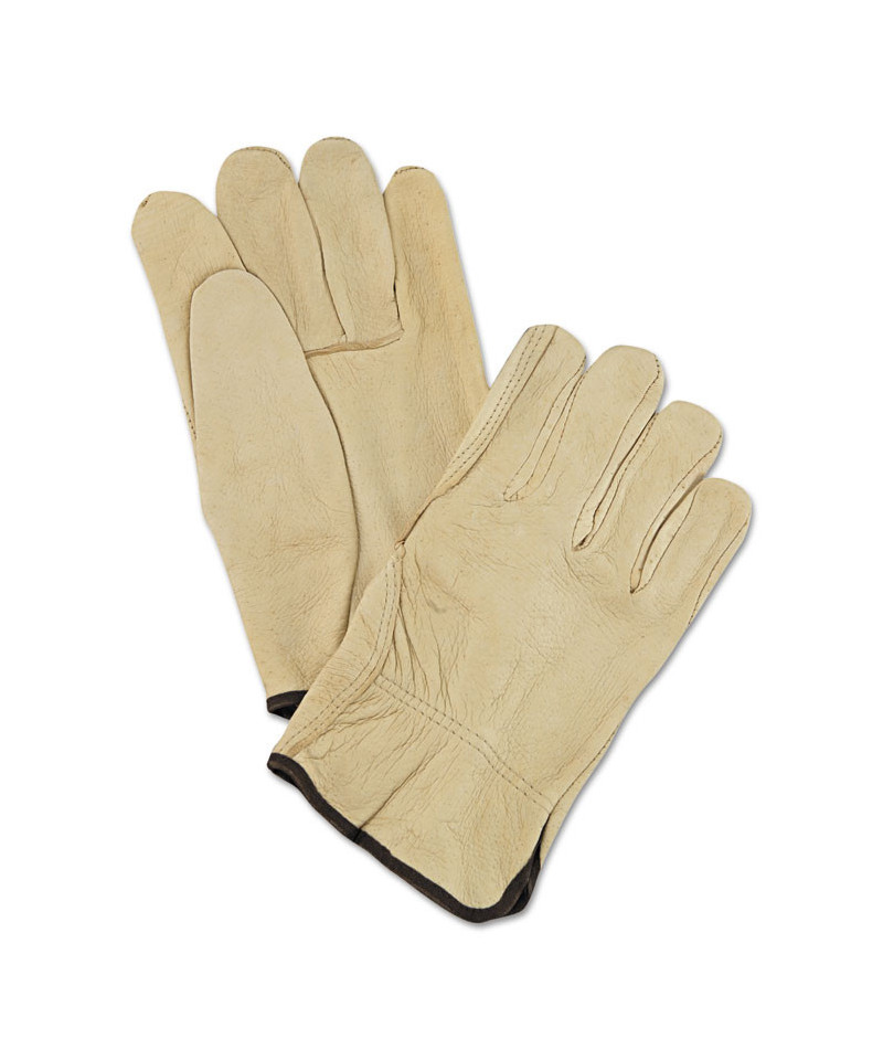Unlined Pigskin Driver Gloves, Gunn Cut, Straight Thumb, Large, Cream, 12 Pairs