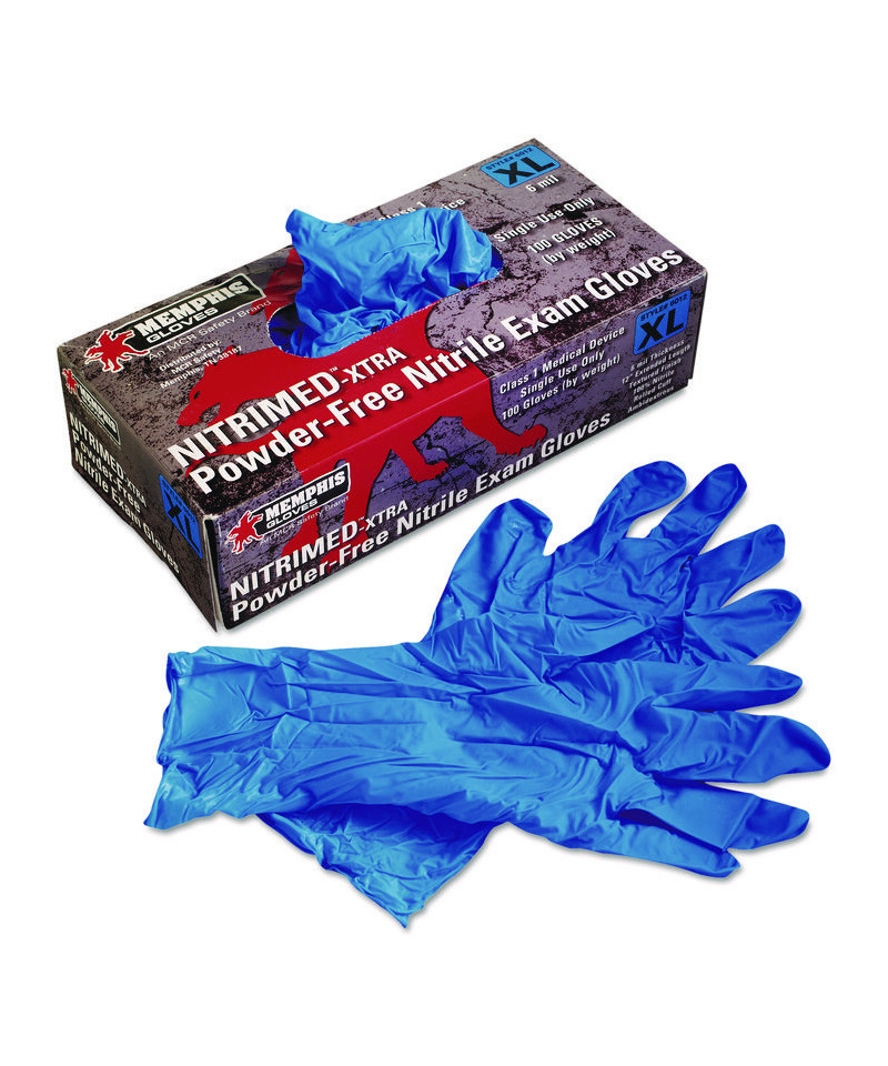 Nitri-Med Disposable Nitrile Gloves, Powder-Free, X-Large, 6 mil, Blue, 100/Box