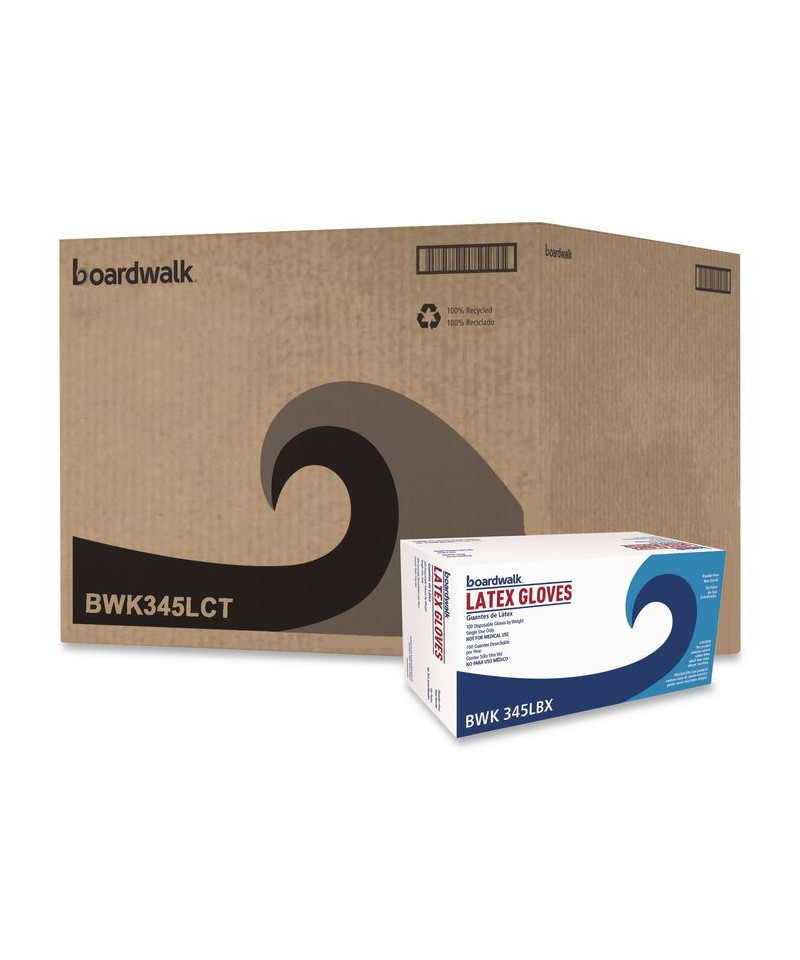 Boardwalk General-Purpose Latex Gloves are ideal gloves for food handling and preparation, general assembly, and manufacturing work. Can also be used to prevent the spread of germs and in other non-medical applications requiring dexterity. Ambidextrous. Non-sterile. Powder-free. Rolled cuff for easy-on, easy-off. The simple, self-dispensing box makes grabbing a fresh pair quick and easy. Single-use, disposable gloves.