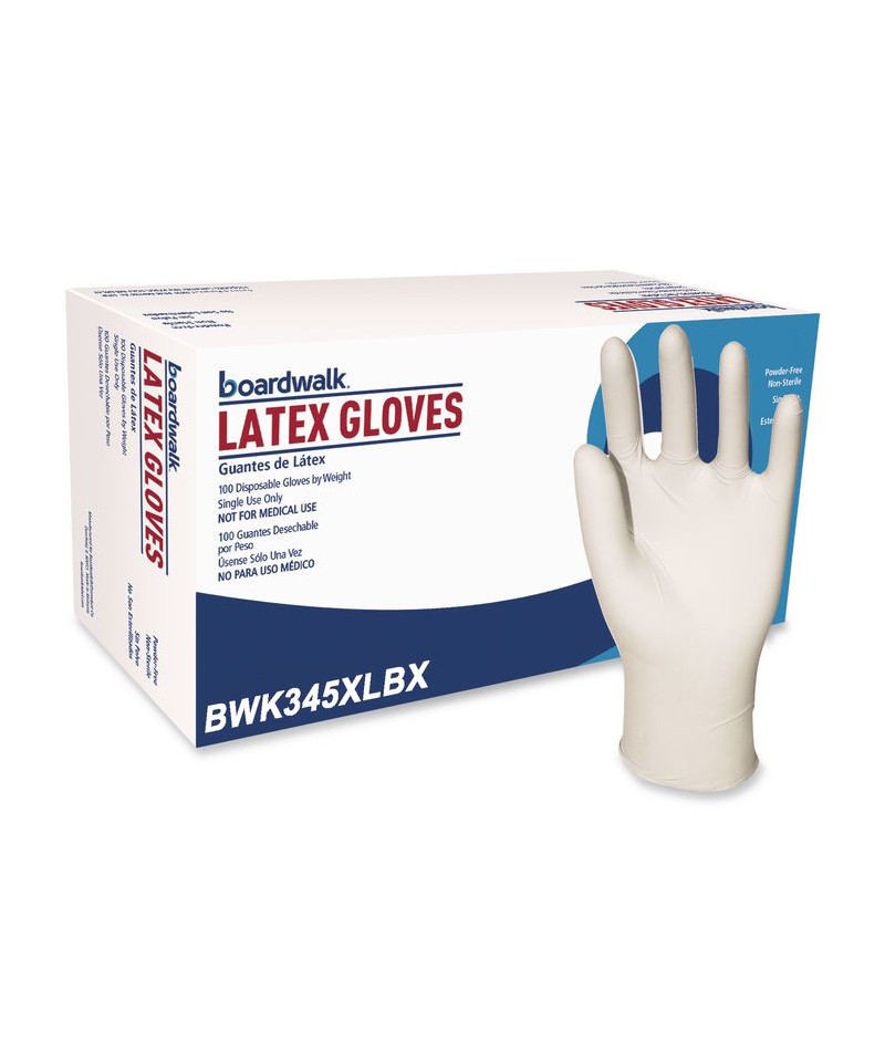 Boardwalk General-Purpose Latex Gloves are ideal gloves for food handling and preparation, general assembly, and manufacturing work. Can also be used to prevent the spread of germs and in other non-medical applications requiring dexterity. Ambidextrous. Non-sterile. Powder-free. Rolled cuff for easy-on, easy-off. The simple, self-dispensing box makes grabbing a fresh pair quick and easy. Single-use, disposable gloves.