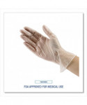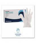 Convenient vinyl general purpose powder free gloves provide excellent tactile sensitivity and hand protection. These gloves are ideal for users who are at risk of becoming sensitive to latex protein allergens. Quick and easy to dispense and put on. Safe for food contact applications. Gloves offer unparalleled economy, functionality and value. Box is also a dispenser with perforated, removeable opening on top that allows single glove dispensing.