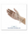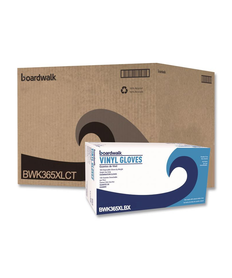 Convenient vinyl general purpose powder free gloves provide excellent tactile sensitivity and hand protection. These gloves are ideal for users who are at risk of becoming sensitive to latex protein allergens. Quick and easy to dispense and put on. Safe for food contact applications. Gloves offer unparalleled economy, functionality and value. Box is also a dispenser with perforated, removeable opening on top that allows single glove dispensing.