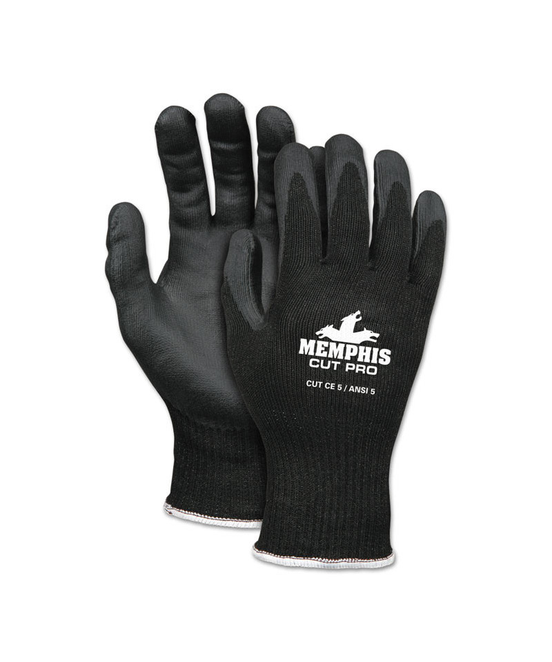 Select strength and cut protection with durable coated gloves. Made with sturdy 10 gauge HPPE and steel shell. Soft black nitrile foam coating. Provides a solid grip, both wet and dry. Dark coloring hides dirt and grime. CE Cut score 5.