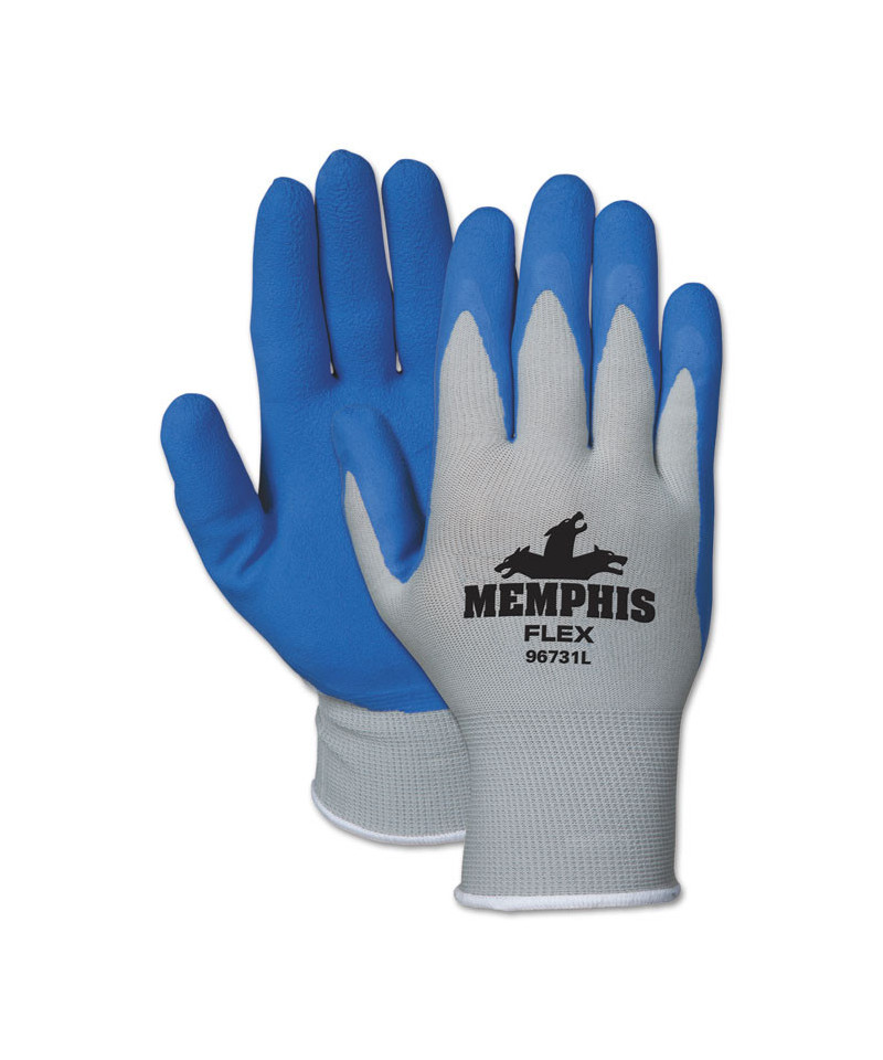Memphis Flex Latex-Coated Seamless Nylon Knit Gloves, EN388: 3131, Large, Blue/Gray, Pair
