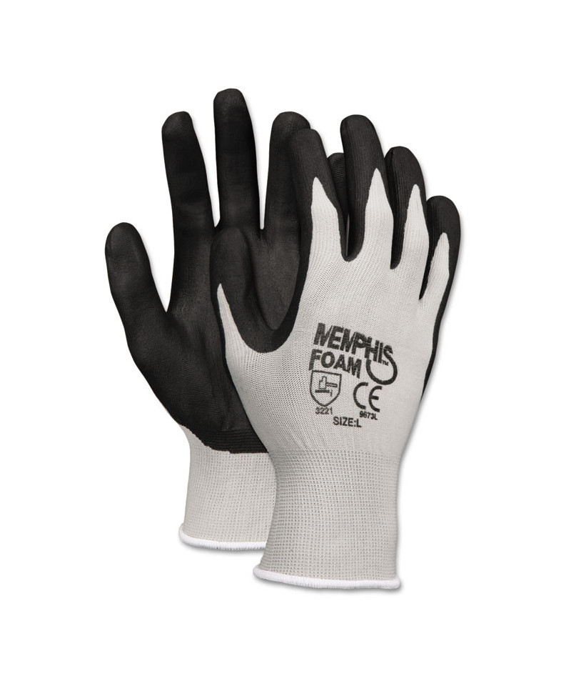 Economy Foam Nitrile Gloves, EN388: 3221, Large, Black/Gray, 12 Pairs