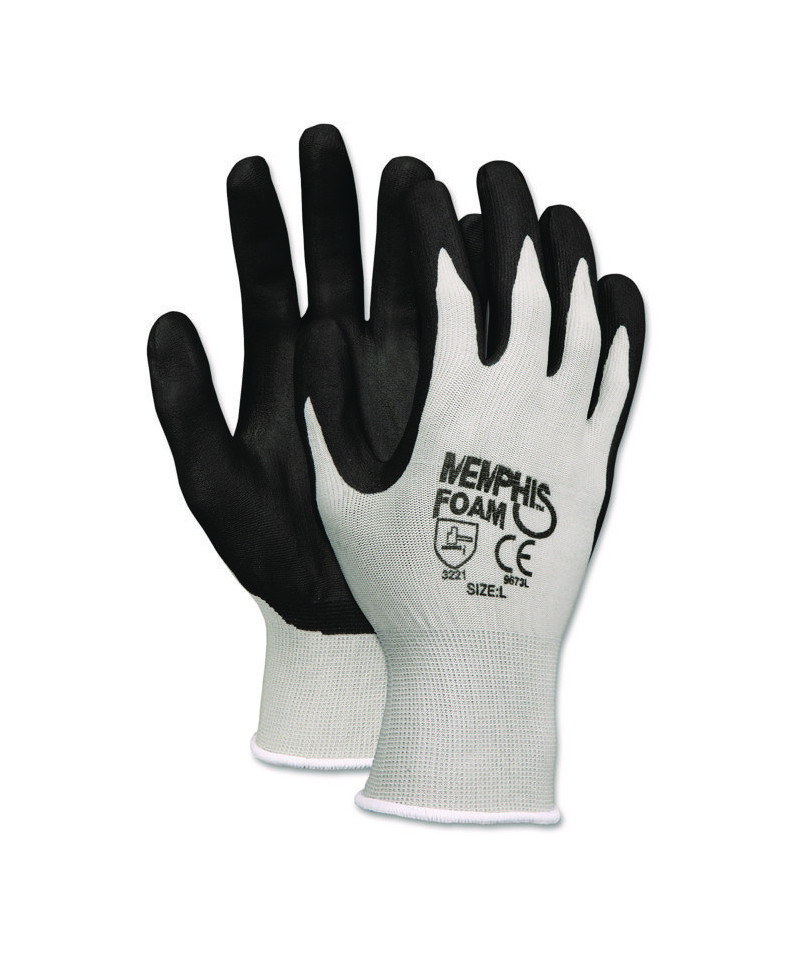 Solid, 13 gauge nylon knit design provides a durable, economical glove choice for the workplace. Nitrile-dipped palm and fingers for handling larger spills and heavier cleanup without losing grip. Ideal for small parts handling where tactile sensitivity and dexterity are important.