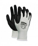 Solid, 13 gauge nylon knit design provides a durable, economical glove choice for the workplace. Nitrile-dipped palm and fingers for handling larger spills and heavier cleanup without losing grip. Ideal for small parts handling where tactile sensitivity and dexterity are important.