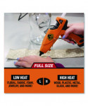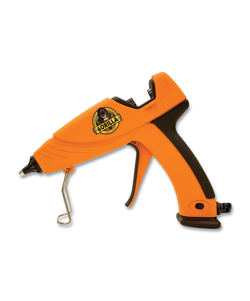The Gorilla Dual Temp full-size glue gun is a great tool for crafts and home projects requiring more glue output and volume. The gun is lightweight, with a comfortable grip and a built-in stand making it easy to use. The easy-squeeze trigger and long insulated nozzle allow for precise application on any project.
