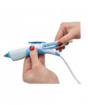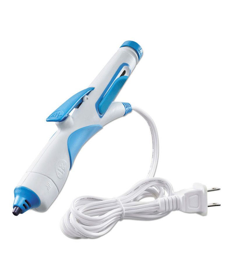With an easy-to-dispense trigger and ergonomic design, precision accuracy is delivered to every project. Pen style grip for easy use. Non-stick tip for easy clean-up. Nozzle changes from blue to red indicating when the pen is hot and ready for use. Top-mounted finger trigger allows for controlled glue dispensing. Suggested use on plastic, felt, styrofoam, paper and silk. For best results use with the mini glue sticks.