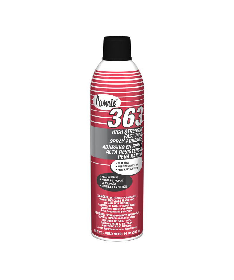 Camie 363 is especially formulated to bond polyethylene to itself, concrete block, wood and many hard-to-bond surfaces. It may also be used to bond paper, cardboard, fabric, urethane foam, foil, metal, wood and most plastics to itself and a variety of other substrates. It may be used either for permanent or temporary bonds and used to bond carpet.