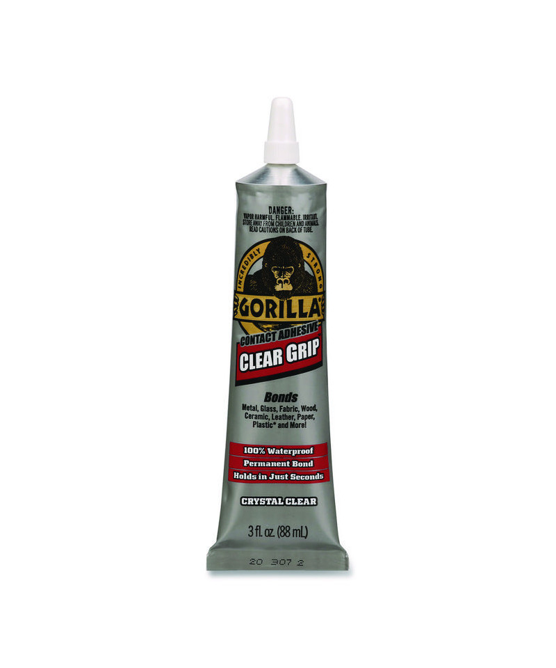 For the toughest jobs on planet earth®. A flexible, fast-setting, crystal clear contact adhesive that creates a strong, permanent bond. Gorilla Clear Grip is paintable and waterproof making it great for projects both inside and out. Build, create, repair!