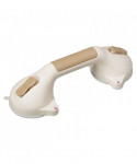 Suction cup grab bar provides excellent temporary balance assistance on any non-porous surface. Quick and easy to install. Simply push levers down to attach to surface and push up to release - releases with no damage to surfaces. Durable suction pads ensure safe balance assistance. Infused with BactiX™ antimicrobial protection - perfect for use in restrooms or healthcare facilities. Color indicator changes from red to green to signify grab bar is secure. Not to be used to support body weight. White/beige.