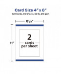Printable Postcards, Laser, 80 lb, 4 x 6, Matte White, 100 Cards, 2/Cards/Sheet, 50 Sheets/Box