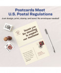 Create professional-looking invitations, announcements, reminders, seasonal offers and more. Sturdy bright white cardstock is either matte-coated for vivid graphics and sharp text or has a premium quality glossy finish ideal for photos. Ultra-fine perforations let you separate cards cleanly and easily. Meets U.S. postal regulations for postcards. Easy to customize with free templates and designs using Avery Design & Print Online. 8.5" x 11" sheets.