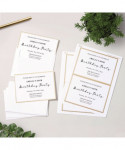 Remarkably reflective and elegant, Avery matte white invitation cards with metallic gold borders bring a strikingly radiant shine to any event or project. Each card is pre-printed with a brilliant gold foil-like border that is guaranteed to capture people's attention. Using 80-lb cardstock, each durable card has a premium feel. Simply fold and tear away each card on the sheet using the precise perforations on the edge of the cards which will leave behind a smooth edge. Create amazing double-sided designs to make DIY wedding invitations, holiday cards, menu cards, wedding programs, recipe cards, party invitations and more using the free design software and templates at avery.com/templates. Invitation cards come with blank white envelopes. Cards are compatible with both laser printers and inkjet printers. Please Note: The envelopes are not printable.