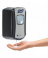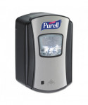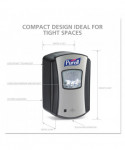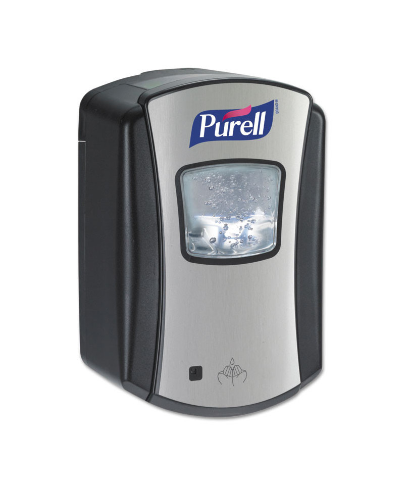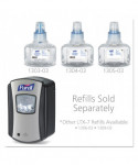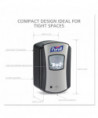 Compact hand sanitizer dispenser. Smart, trouble-free electronics. Large sight window for at-a-glance monitoring. High-capacity output. Converts to a locking dispenser key included. Compatible with PURELL LTX-7™ 700 mL refills. Compatible with the GOJO SMARTLINK™ Electronic Hand Hygiene Monitoring system. Mounts to wall with included adhesive tape or optional hardware. Multiple hole pattern allows use of existing wall holes. Batteries not included.