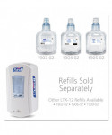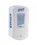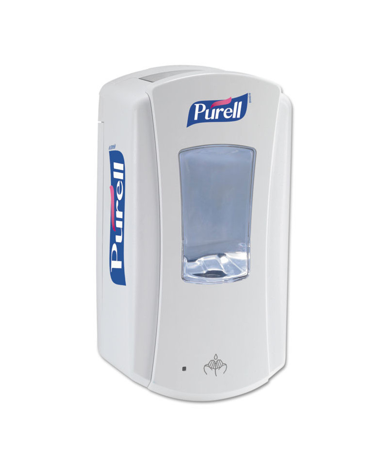 Hand sanitizer dispenser. Smart, trouble-free electronics. Large sight window for at-a-glance monitoring. High-capacity output. Converts to a locking dispenser key included. Compatible with PURELL® LTX-12™ 1200 mL refills. Compatible with the GOJO® SMARTLINK™ Electronic Hand Hygiene Monitoring system. Mounts to wall with included adhesive tape or optional hardware. Multiple hole pattern allows use of existing wall holes. Batteries not included.