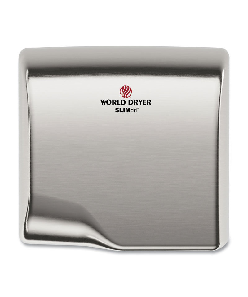 World Dryer's SLIMdri electric hand dryer offers a cost-effective, hand-drying solution. It uses up to 80 percent less energy and dries 40 percent faster than standard models. Its SteriTouch antimicrobial technology and hands-free operation provide a sanitary drying experience and inhibits growth of bacteria on the product while extending the service life. Features like surface-mount and universal voltage help simplify installation. The L-974A is built with an aluminum cover material that stands up to . Its compact and contemporary design fits any commercial environment.