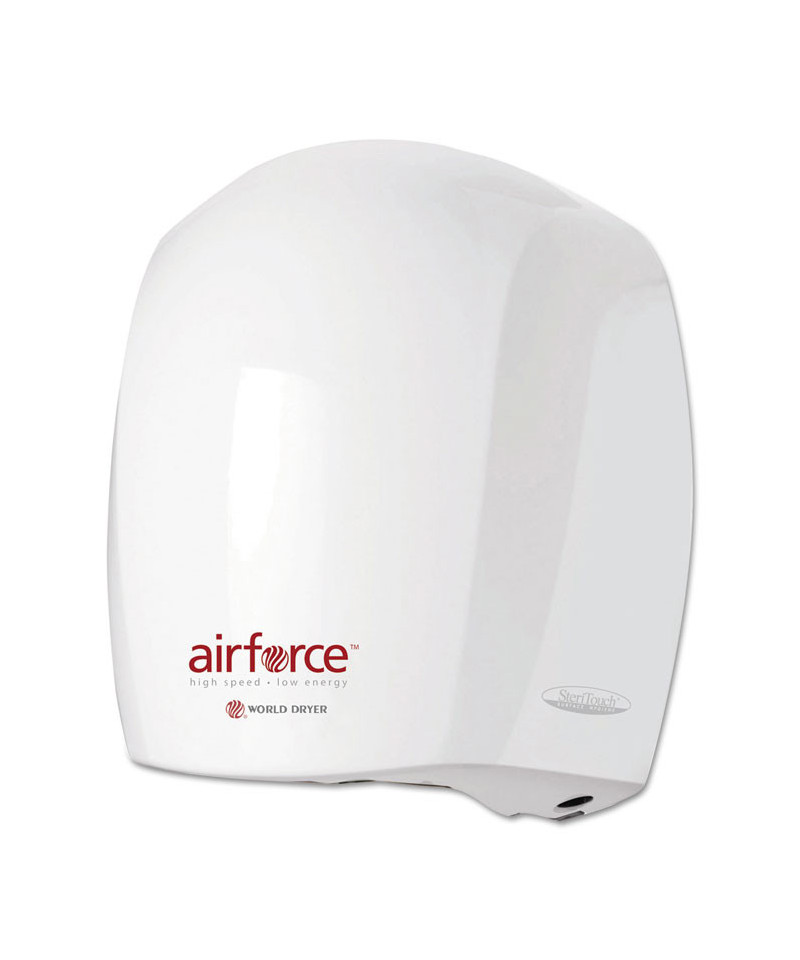 Ambient temperature hand dryer. Manufactured with patented SteriTouch antimicrobial technology on the dryer, inhibiting the growth of bacteria, mold and fungus extending the dryer's service life. Its modern sleek design complements any washroom décor.
