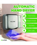 The Hemlock Hand dryer can save you thousands of dollars a year in paper towels and electricity. The Hemlock hand dryer has a wired-in option for fast and easy installation. The dryer will activate automatically when hands are placed underneath it and will stop when hands are removed. It also features auto-stop function if hands are not removed after 63 seconds. This package also includes an Alpine Industries' sleek, modern, corrosion-resistant brushed Stainless Steel Wall Guard. The wall guard quickly mounts with double sided tape beneath your hand dryer to protect wall finishes from water stains and damage. The wall guard is easily wiped down and they assist maintenance personnel in preserving the appearance and cleanliness of your restroom facilities.