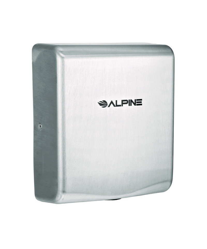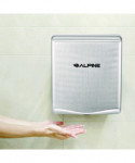 The Alpine Industries Willow Commercial Automatic Electric Hand Dryer is a high-speed automatic hand dryer with a unique design offering a blue light for hand drying efficiency. A HEPA filter cleans bacteria from intake air and the dryer is even equipped with a heat and speed control. With a less than 4" depth, this hand dryer is ADA-compliant without the need of a recess kit. With a powerful 32,000 RPM motor, the Willow model will dry your hands in 10 seconds, faster than many comparable high-speed hand dryers and excellent for high-traffic bathroom areas. Saving thousands of dollars per year in paper towels and electricity, the Willow hand dryer is also equipped with a plug-in option for quick and easy installation. Hand dryer automatically activates when hands are placed beneath the sensor and stops when they are removed. Also features auto-stop function if hands are not removed after 63 seconds.