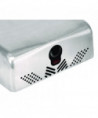 High speed automatic hand dryer with a unique design offering a blue light for hand drying efficiency, HEPA filter to clean bacteria from intake air, and is even equipped with a heat and speed control.