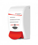Ultrasonically sealed cartridge and pump mechanisms prevent ingress of air in cartridge to help prevent product contamination. Dispenser is exclusively protected by BioCote, a silver based antimicrobial agent that is incorporated into the plastic and inhibits the growth of bacteria and molds on the dispenser. Unique locking mechanism helps prevent the unauthorized access and product contamination. Color-coded push button for easy visual identification of product type to encourage correct product usage and compliance.