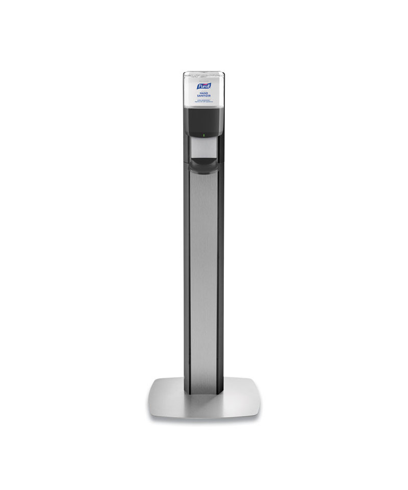 Show you care by providing PURELL® products where they're needed most. The PURELL MESSENGER™ Floor Stand with ES8 Automatic Dispenser helps promote your focus on well-being with a freestanding design that can be placed nearly anywhere in your building. The included dispenser provides an easy way to access America's #1 hand sanitizer brand. Stands can be personalized with your message on the front and back or accessorized with PURELL MESSENGER™ Floor Stand Signs. The low-profile baseplate is designed to maximize stability while being lightweight, allowing you to quickly move it around and clean surrounding areas. The sturdy silver baseplate hides dirt and always looks good. The included touch-free ES8 Automatic Dispenser uses PURELL® ES8 Hand Sanitizer 1,200 mL transparent refills (sold separately) that allow you to monitor product levels with one look. PURELL® Hand Sanitizer refills for ES8 Automatic Dispensers include 7753-02, 7763-02, 7752-02, 7755-02, 7756-02, 7754-02, 7751-02, 7760-02, 7762-02 and factory sealed to help eliminate the risk of contamination.