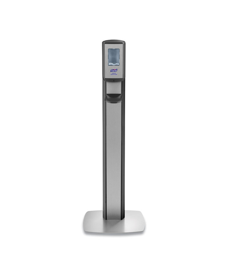 Show you care by providing PURELL® products where they're needed most. The PURELL MESSENGER™ Floor Stand with CS8 Automatic Dispenser helps promote your focus on well-being with a freestanding design that can be placed nearly anywhere in your building. It's an ideal solution for high-traffic areas, including waiting rooms and hallways. The included PURELL® CS8 Automatic Dispenser provides a convenient way to access America's #1 hand sanitizer brand. Stands can be personalized with your message on the front and back, or they can be accessorized with PURELL MESSENGER™ Floor Stand Signs. The low-profile baseplate is designed to maximize stability while being lightweight, allowing you to quickly move it around and clean surrounding areas. The sturdy silver baseplate hides dirt and always looks good. The included touch-free CS8 dispenser has a large sight window to monitor product levels with one look. Each refill (sold separately) for the dispenser features Energy-on-the-Refill technology, which helps simplify maintenance and decrease labor by eliminating battery replacements. Refills are factory sealed to help eliminate the risk of contamination.