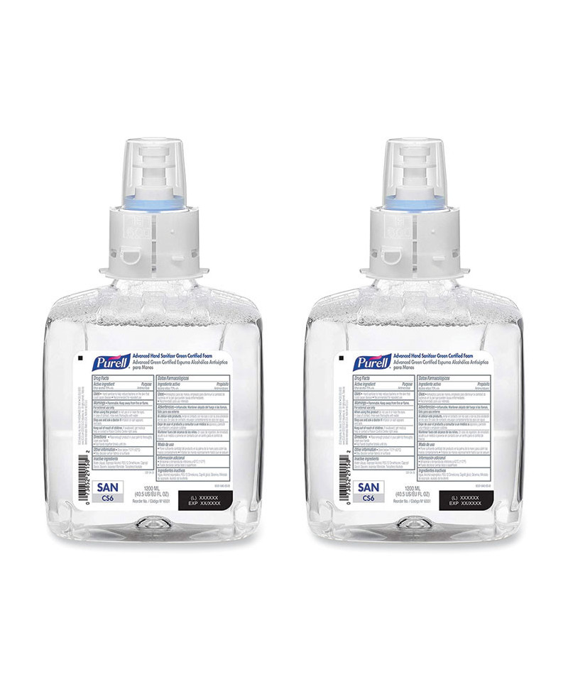 Advanced Hand Sanitizer Green Certified Foam Refill, For CS6 Dispensers, 1,200 mL, Fragrance-Free, 2/Carton