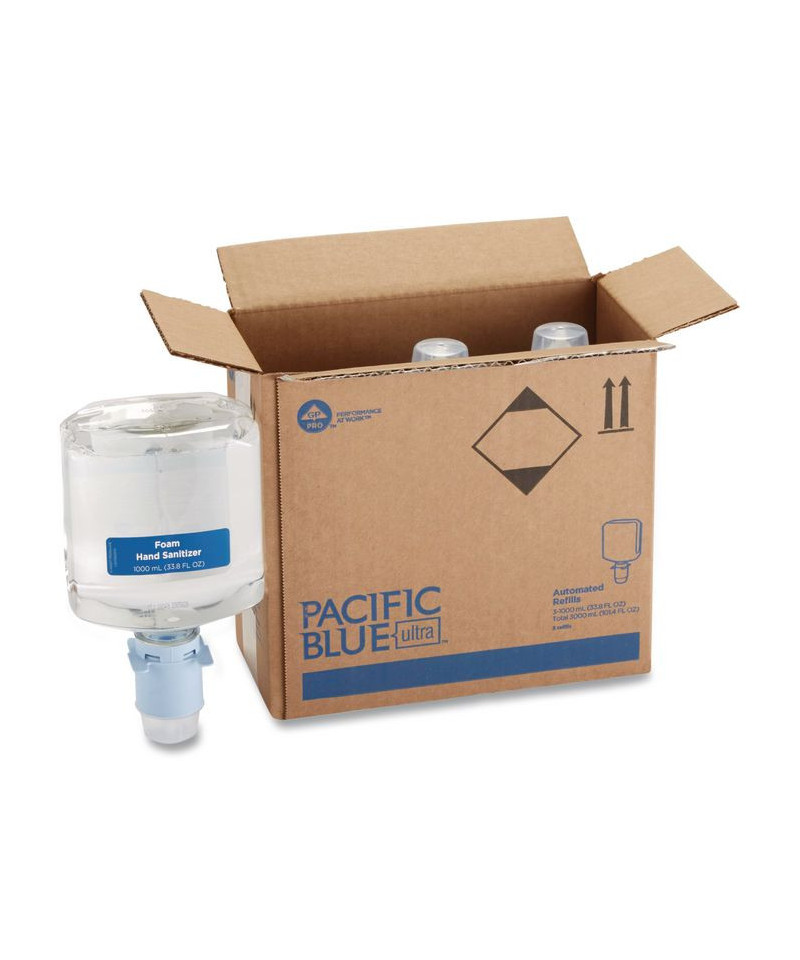 Formulated to dry quickly, Pacific Blue Ultra™ hand sanitizer kills 99.99% of common germs that may cause illness and is safe for use in food processing and food service areas after proper hand washing. Along with our other soaps and sanitizers, it is designed to work with Pacific Blue Ultra™ soap dispensers. Makes for visibly clean hands when water isn't available.