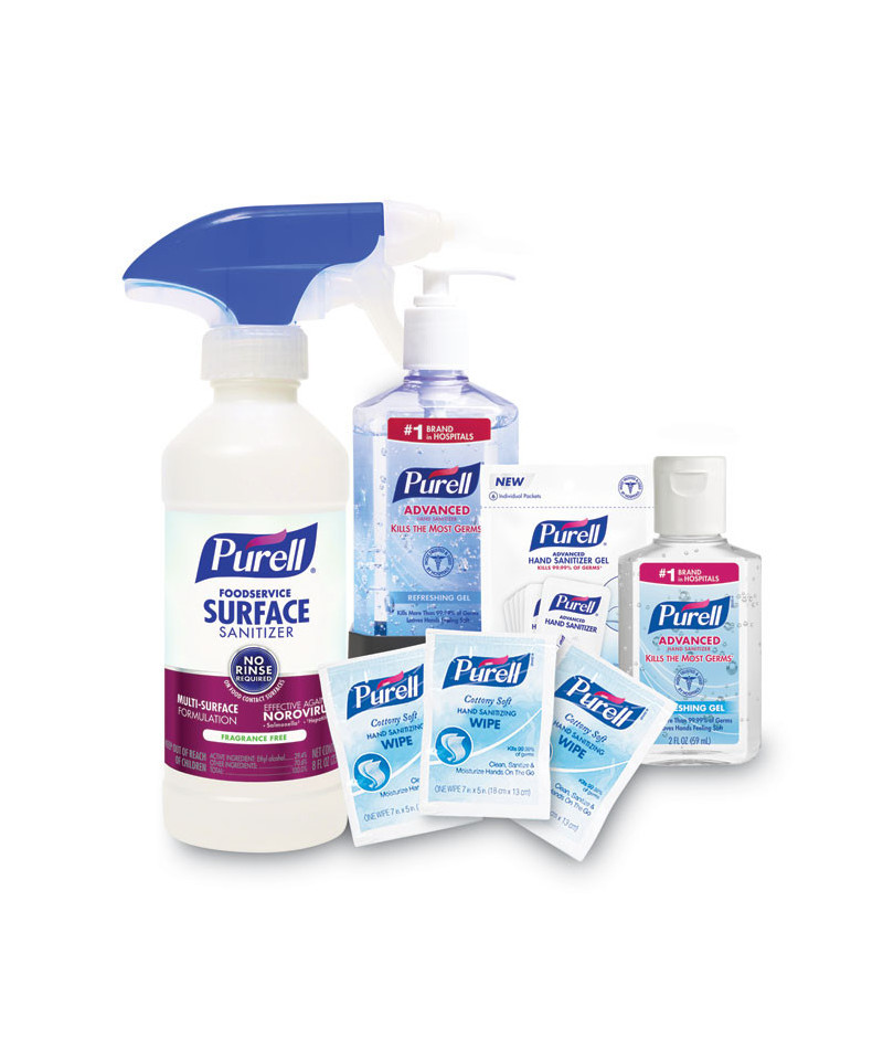 Reinforce your caring culture and give employees the confidence they need to collaborate in-person again with the PURELL Employee Care Kit, a unique assortment of trusted products for hands, surfaces and on-the-go. Each kit includes a personalized note to let them know you care for their wellbeing, one 12 oz PURELL Advanced Hand Sanitizer with the PURELL PLACES Light-up Bottle Dock, one 2 oz Portable Flip Cap Bottle of PURELL Advanced Hand Sanitizer, three PURELL Cottony Soft Hand Sanitizing Wipes, one PURELL Advanced Hand Sanitizer Personal Packet, and one 8 oz sample of PURELL Surface Sanitizer Disinfecting Spray with Trigger.