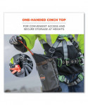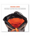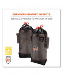 The Arsenal 5928 Topped Bolt Bag Tool Pouch is certified to the ANSI/ISEA 121-2018 dropped object prevention standard for safely storing and accessing hand tools, small parts and hardware while working at heights. Made with a 1680D ballistic polyester exterior, a 600D polyester ripstop lining and a 420D drawstring nylon top, this tool belt pouch is built for long-lasting durability. Designed for optimal tool storage and prevention of dropped objects, the one-handed cinch top enables convenient but secure access while at heights. A hi-vis orange ripstop lining makes it easy to find tools and small hardware. The exterior of this tool belt pouch features two tool loops for spud wrenches, bull pins or screwdrivers, as well as two D-rings for attaching tool lanyards. It also includes a nickel-plated storm drain for ventilation.