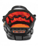 The Topped Tool Pouch with Zipper Closure houses tools, small parts and hardware. The one-handed snap-hinge opening has a zipper closure system for safety and security. An innovative modular buckle connection system on the back easily connects to standard tool belts and fall protection harnesses without the worker having to remove them. Tool lanyards can be attached to two D-rings on the holster for additional safety and security. Can be used as both a tool pouch, tool bag or bolt bag.