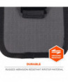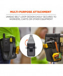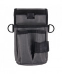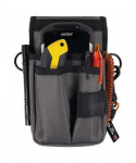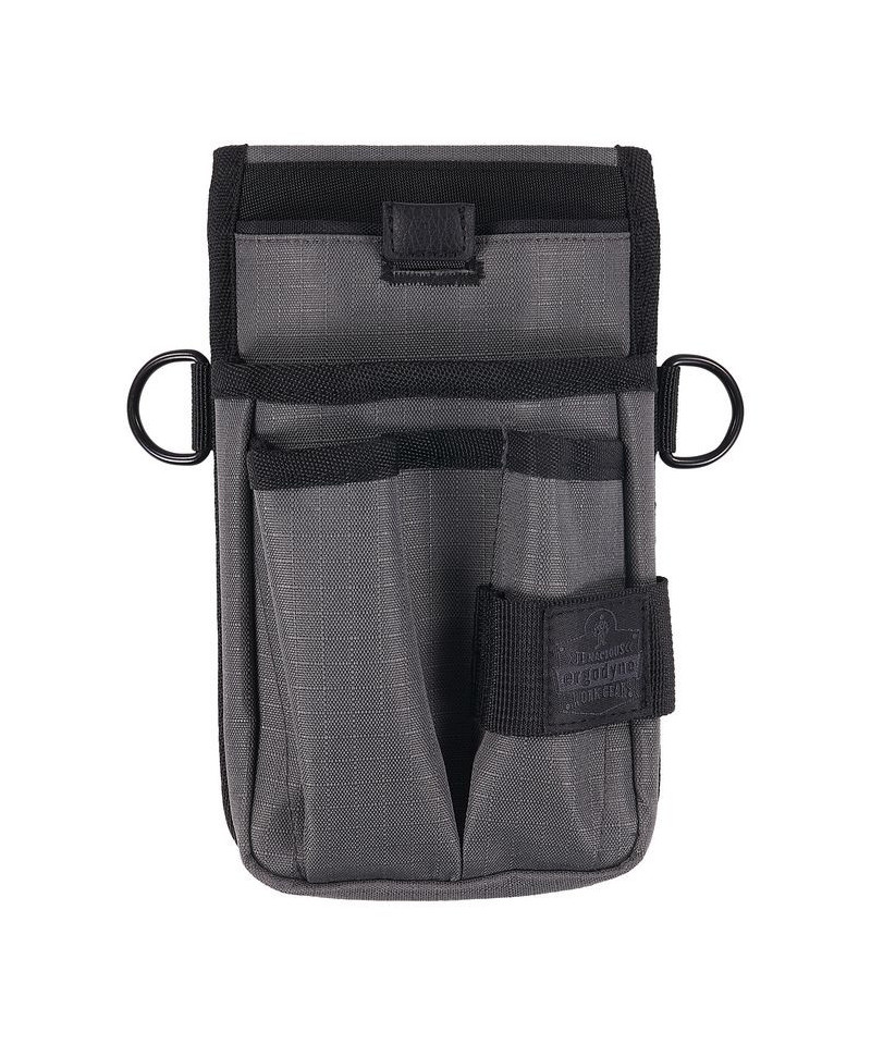Arsenal 5568 Tool Pouch with Device Holsters loops onto your belt for safe storage and convenient access to various tools and personal items. This multi-use tool pouch is built to last with abrasion-resistant ripstop polyester. This tool holder features four pockets in varying sizes to fit small hand tools and larger, personal items. Three smaller pockets in the front house pens, pencils, markers, zip ties and box cutters while a webbed loop on the front keeps a tape measurer or small tool easily accessible. A larger and deeper pocket sits behind these pockets for barcode scanners or tools. This barcode scanner holder is designed for convenient use with "candy bar" style scanners that do not have a handle. In the rear is a pocket with brushed interior and pull tab to keep cell phones safe and easy to access. Two d-rings on the side clip lanyards or smaller accessories such as glove clips or an ID badge reel.