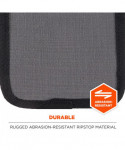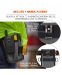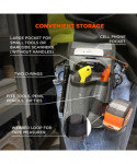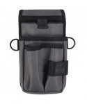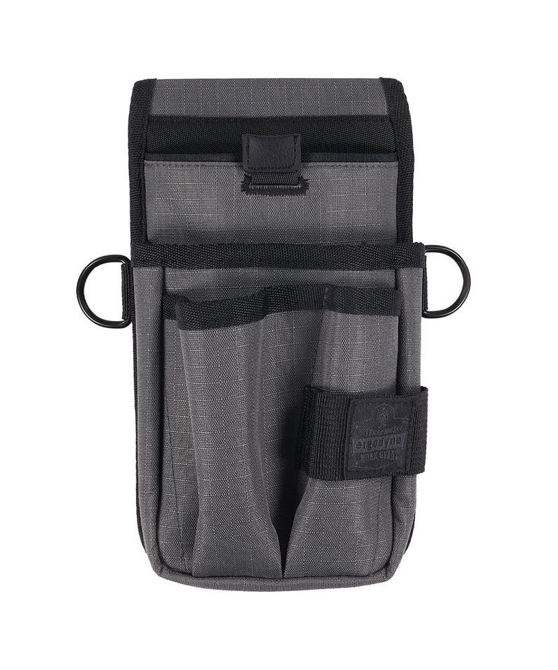 Arsenal 5569 Tool Pouch with Device Holsters slides through or clips to your belt for safe storage and convenient access to various tools and personal items. This multi-use tool pouch is built to last with abrasion-resistant ripstop polyester. This tool holder features four pockets in varying sizes to fit small hand tools and larger, personal items. Three smaller pockets in the front house pens, pencils, markers, zip ties and box cutters while a webbed loop on the front keeps a tape measure or small tool easily accessible. A larger and deeper pocket sits behind these pockets for barcode scanners or tools. This barcode scanner holder is designed for convenient use with "candy bar" style scanners that do not have a handle. In the rear is a pocket with brushed interior and pull tab to keep cell phones safe and easy to access. Two d-rings on the side clip lanyards or smaller accessories such as glove clips or an ID badge reel.
