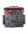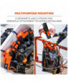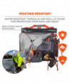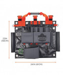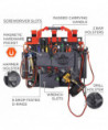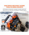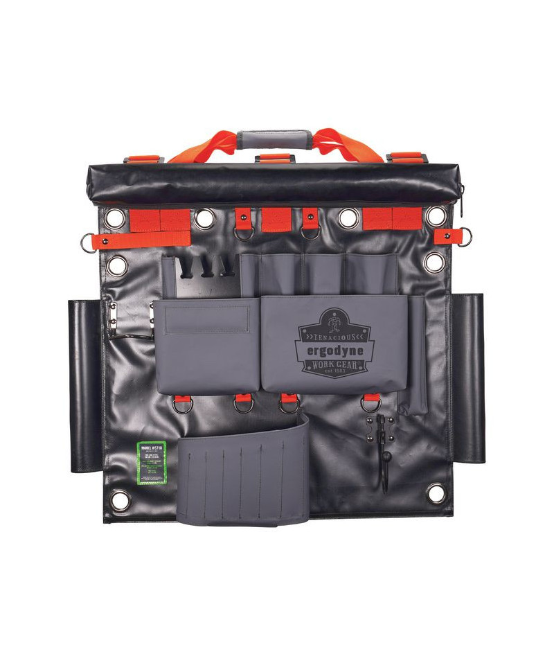 The Arsenal 5710 Bucket Truck Tool Board is a multifunctional tool storage, organization and tethering solution designed for work in aerial buckets and other mobile elevated work platforms (MEWPs). With multiple grommets and three straps, it can be securely hung from bucket hooks or affixed to railings—maximizing space in compact work areas by keeping gear up off the floor and out of the way. Unlike lineman tool boards, this board is designed with easily accessible drop-tested d-rings for securely tethering tools to prevent dangerous dropped objects. This durable aerial tool apron is made from water-resistant tarpaulin and also features a detachable roll-up rain cover to keep tools dry and protected in harsh conditions. A padded nylon carrying handle makes for easy transport to and from the jobsite.