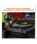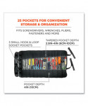 The Arsenal 5870 Tool Organizer Roll Up features 25 tool pockets for convenient transport, easy organization and durable protection of hand tools. The inside of the tool roll features 22 various sized open-top slots for storing screwdrivers, wrenches, pliers and more. For safe storage of fasteners and other small hardware, it also features three topped accessory pockets with hook-and-loop closures. Made with heavy-duty 1680D ballistic polyester to protect tools through the everyday grind. This space-saving tool organizer rolls up and securely buckles shut to stow neatly in trucks, buckets, work benches and more. Adjustable cinch straps tighten to prevent tools from spilling out, while a durable carrying handle makes it easy to transport from site to site. This tool roll up is ideal for workers needing a compact solution for storing, organizing and transporting hand tools, including construction, carpentry, automotive, electrical and more.