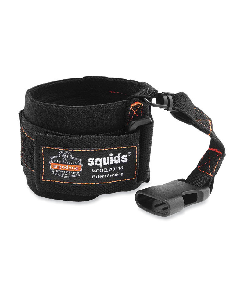 Squids 3116 Pull-On Wrist Lanyard with Buckle features a patented design that's easy to pull on and off. One-size-fits-all format and elastic-material construction ensures a snug, secure fit for all users. Modular quick-connect buckle allows the wearer to easily attach any compatible tool-tail equipped item. Designed specifically for use with Squids 3103 Detachable Tool Tail Cinch-Loops (sold separately). Third-party tested to a maximum safe-working capacity of 3 lb with a 2:1 safety factor.
