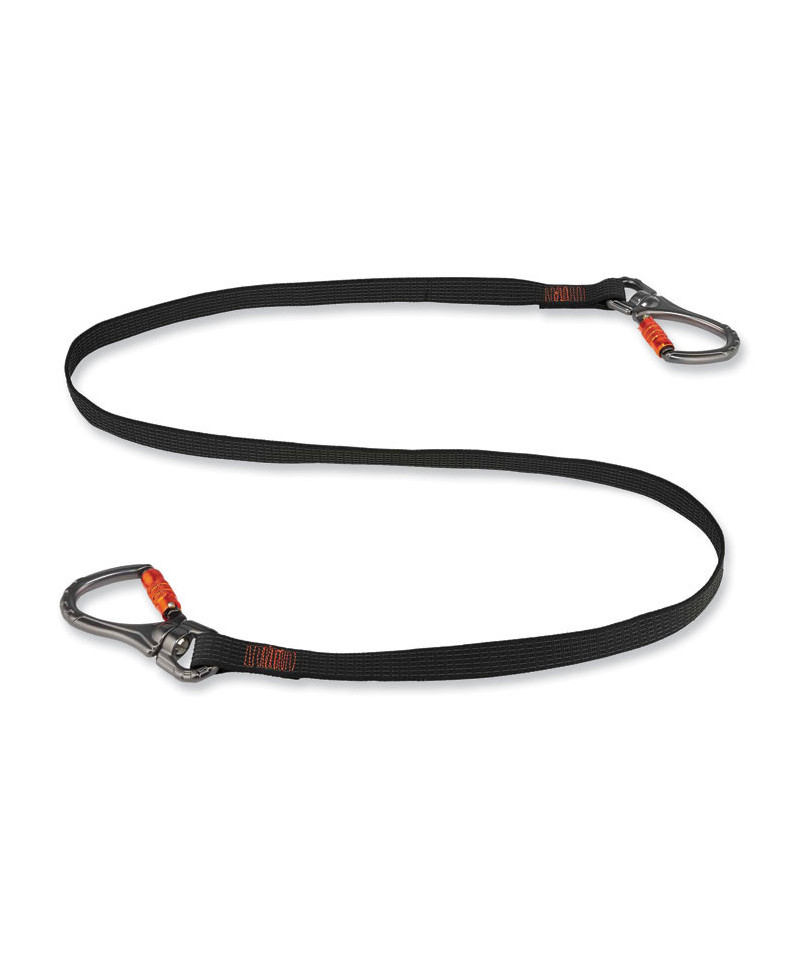 Make the Squids 3139 Tool Lanyard with Two Locking Swivel Carabiners an integral part of your overall fall protection plan to reduce the risk of falling objects and help ensure overall workplace safety. When working at heights, it's critical to tether your tools, so do it right with Squids tool lanyards. Designed to be anchored to a structure rather than the worker, this industrial-grade lanyard features non-shock absorbing webbing for better drop-protection when working with heavier tools. The advanced technical design of this lanyard utilizes single-length constructed webbing to minimize the potential for weak points and heavy-gauge nylon stitching for added strength and durability, ensuring that this safety device can withstand even the harshest work-environment conditions. Two double-action locking carabiners, one on either end, deliver maximum anchoring security, and captive-eye, swiveling carabiner attachment points allow the user to better predict load shifts while minimizing lanyard tangles. Third-party certified to a 40 lb maximum safe working capacity with a 2:1 safety factor.