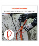 Do your part to reduce the risk of dangerous falling objects at your worksite to help ensure overall workplace safety. Designed to be anchored to a structure rather than the worker, the Squids 3148 Tool Lanyard with XL Carabiner + Threaded Loop features an extra-large, heavy-duty aluminum, double-locking carabiner on one end for easily attaching to oversized drills, heavy wrecking bars, handrails and more. Captive-eye carabiner-attachment end prevents the webbing from working its way into the gate of the carabiner and causing it to open while in use, while also minimizing the potential for the worker to use the carabiner for activities it's not rated for. A threaded, secure-grip loop on the other end provides a versatile option for either attaching to larger tools: burke bars, stressing rams, mag drills and more, or to anchor the tool to the structure being worked on. Single-length webbing minimizes the potential for weak points, and heavy-gauge nylon stitching provides the added the strength and durability needed to withstand the harshest work environments. When working at heights, choosing the best tool tethering equipment matters, because there are no second chances. Third-party certified to an 80 lb maximum working capacity with a 2:1 safety factor.