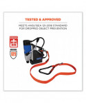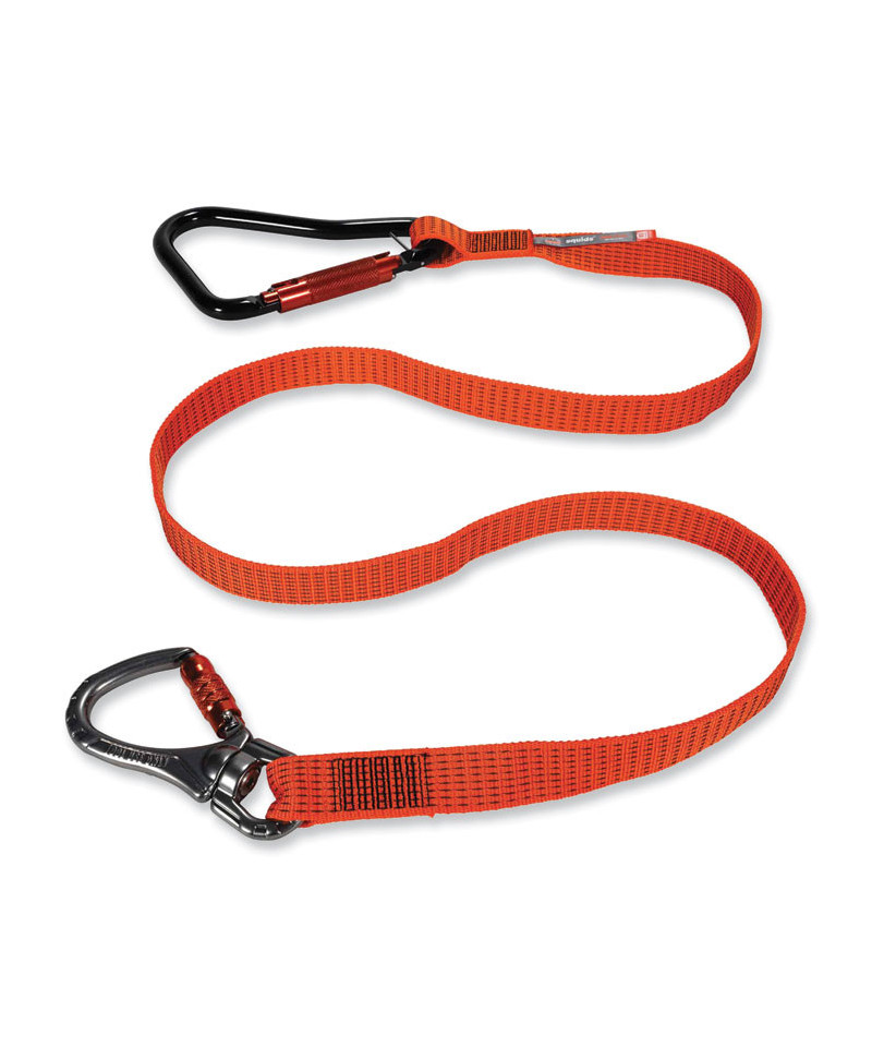 Make the Squids 3149 Tool Lanyard with XL + Swivel Carabiners an integral part of your overall fall protection plan to reduce the risk of falling objects and help ensure overall workplace safety. Designed to be anchored to a structure rather than the worker, this industrial-grade tool lanyard features an extra-large, heavy-duty aluminum, double-locking carabiner on one end for easily attaching to oversized drills, heavy wrecking bars, handrails and more. A smaller auto-closing, auto-double-locking swivel carabiner on the other end simplifies attachments to a wide variety of smaller tools and anchor points. The smaller, swiveling-end carabiner's captive-eye attachment point helps the user better predict load shifts to prevent the webbing from working its way into the gate of the carabiner, while simultaneously minimizing the potential for webbing tangles. Non-shock absorbing webbing delivers better drop-protection when working with heavier tools, and its single-length construction minimizes the potential for weak points. Heavy-gauge nylon stitching throughout provides the added strength and durability needed to withstand the harshest work environments. When working at heights, choosing the best tool tethering equipment matters, because there are no second chances. Third-party certified to an 80 lb maximum working capacity with a 2:1 safety factor.