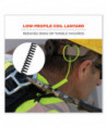 The Squids 3158 Coiled Lanyard with Clamp securely tethers either hard hats or hand tools to prevent both inconvenient hassles and to prevent smaller items from becoming dangerous dropped objects when working at heights. A durable quick-connect clamp makes for easy anchoring shirts or collars, while the low-profile coil design stays out of the workers way to minimize the potential for snag, tangle and tripping hazards. Compatible with all hard hats, this safety lanyard can be easily connected via the accessory slot or suspension system, and it can also be used for tethering hand tools and other smaller objects through a tool's captive hole eyelet or at retrofitted tool-attachment points. Tested to be trusted and built to withstand harsh conditions, this lanyard is third-party certified to a maximum working capacity of 2 lb with a 2:1 safety factor.