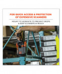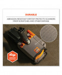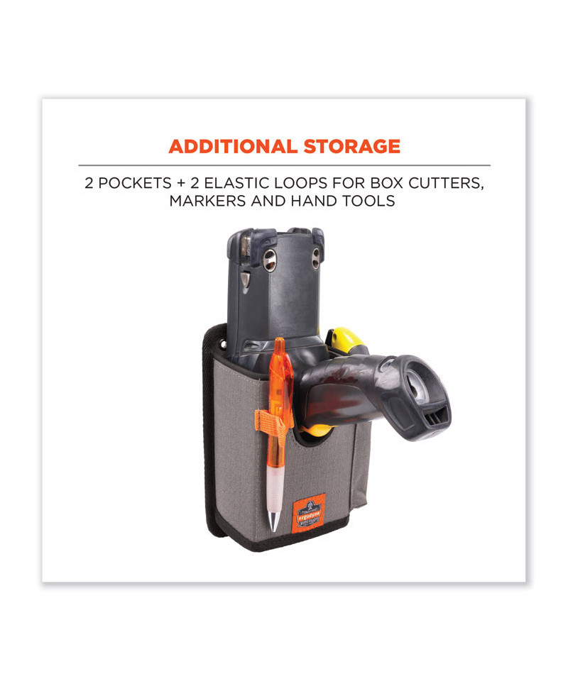 The Squids® 5543 Barcode Scanner Holder Mount with Fastener Straps prevents costly drops or losses by securing barcode scanners to the worksite for convenient storage and access. With two easy-to-attach hook-and-loop fastener straps and grommets, this forklift scanner holder has multiple attachment methods for securing to forklifts, table legs, shelves and more. Built with abrasion-resistant ripstop polyester for work in the harshest environments. For quick access to more than just scanners, this worksite holder also features two pockets and two elastic loops for markers, box cutters and other small hand tools.