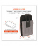 The Squids® 5542 Phone Style Barcode Scanner Holster with Belt Loop prevents costly drops or losses by keeping handle-less barcode scanners, mobile computers and even cell phones securely stored and conveniently accessible. With an easy-to-attach belt loop, the holster slides over and secures around belts without having to remove them. Unlike standard belt clips, the loop design also makes it possible to securely attach scanners to carts, equipment or fixtures. Built with abrasion-resistant ripstop polyester for work in the harshest environments, plus a fleece lining for protection from scratches. This barcode scanner holster is designed for convenient use with candy bar style scanners that do not have a handle. An elastic strap with hook-and-loop closure plus snug elastic sides ensure devices remain securely stored whether the holster is worn vertically or horizontally.