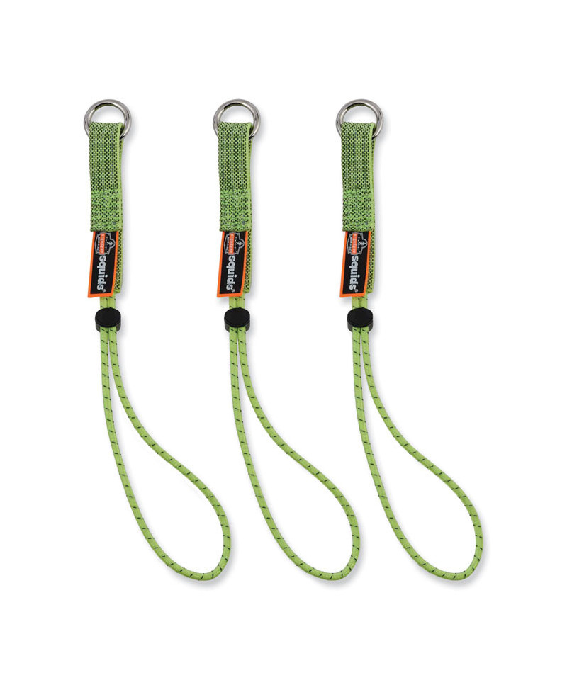 Squids 3703 Elastic Loop Tool Tails with D-Rings provide a complete tool-lanyard retrofit solution for a wide variety of smaller, eyelet-equipped hand tools. Heavy-duty nylon webbing is double-stitched with high-tensile-strength nylon thread to ensure reliable performance in even the harshest work environments. A corrosion-resistant, stainless-steel D-ring on one end accommodates tool-lanyard connections. On the other end, a stretchable, elastic-nylon loop with barrel lock simplifies attaching to captive-hole eyelet-equipped hand tools as well as various other tools that feature a secure lanyard-attachment point. To accommodate tools without captive-hole eyelets or secure attachment points, pair these tails with Squids 3775 Self-Adhering Tool Traps (traps sold-separately). These tool-lanyard tails are built to withstand defined weight limits and can easily be used by any worker to help avoid accidentally dropping objects that could cause extensive property damage and serious, potentially deadly injuries. When used properly, these tails feature a maximum safe working capacity of 15 lb with a 2:1 safety factor.
