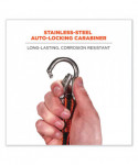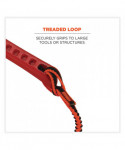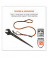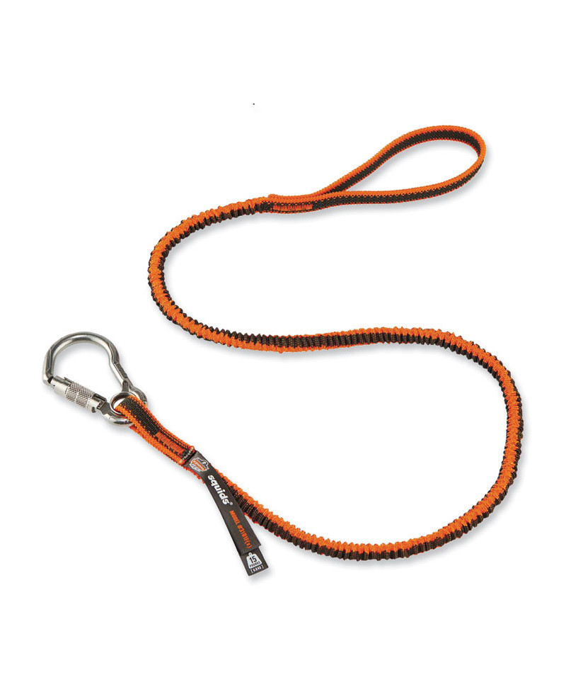 The Squids 3101F(x) Tool Lanyard with Stainless-Steel Carabiner + Loop features a patented design that prevents falling objects while absorbing any dynamic energy that might be transmitted through the lanyard's length to reduce any torque that your body, or anchor point, might experience if a drop occurs. By reducing this shock load, this tested and approved design prevents the tool from pulling the user down with it, effectively protecting all involved, both those above and those below. Durable, low-profile 1680 denier polyester, elastic-blend webbing with high-strength, three-ply nylon stitching on both ends ensures secure, reliable, lighter-weight performance, and the lanyard's single-length format eliminates the potential for the weak points commonly seen on multi-component lanyard alternatives. On one end, an auto-locking, corrosion-resistant, stainless-steel carabiner makes hooking into anchor points or attaching to tools easy, and the carabiner's captive-eye attachment point helps the user better predict the direction of loads while minimizing lanyard tangles. On the other end, a secure-grip treaded loop allows the user to reliably attach the lanyard to themselves, to a wide range of tools (large and small) or to various sorts of fixed-structure anchor points. When working at heights, it's essential to tether your tools, and these tool lanyards are built to withstand defined weight limits and can easily be used by any worker to help avoid accidentally dropping objects that could cause extensive property damage and serious, potentially deadly injuries. This tool lanyard is third-party certified to a 15 lb maximum working capacity with a 2:1 safety factor.